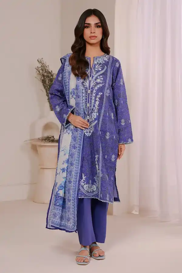 Winter embroidered 3 piece blue color ready to wear lawn suit Rs:4,490.