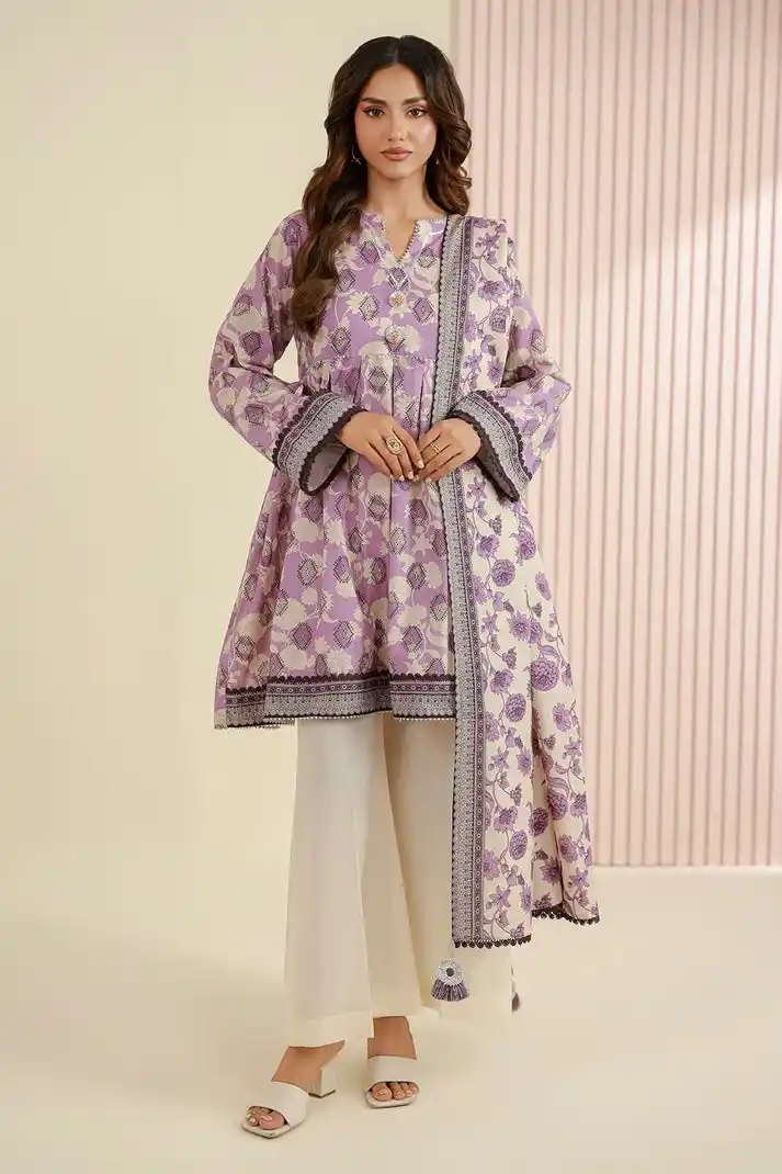 Hurry up! Low stock left because this purple color 3 piece suit is available only for Rs 2890 and comes with a beautiful printed lawn Shirt, Shalwar, and Dupatta.