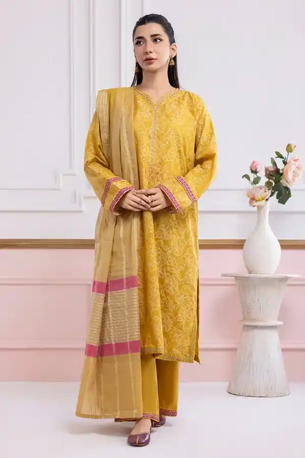 Embroidered 3pc elegant ready to waer jacquard suit Rs:5,990.