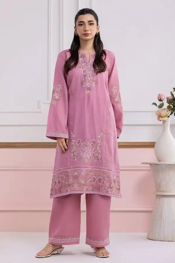 Light purple color embroidered kurta trouser khaddar suit Rs:4,490.